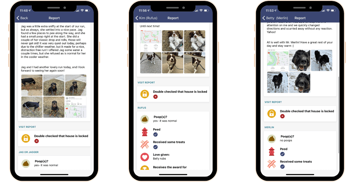 Time to Pet tracks our dog walkers’ and cat sitters’ visit schedule and GPS location. A superior communication tool, we also use Time to Pet to keep you informed about your pet’s visits with real-time updates and photos.